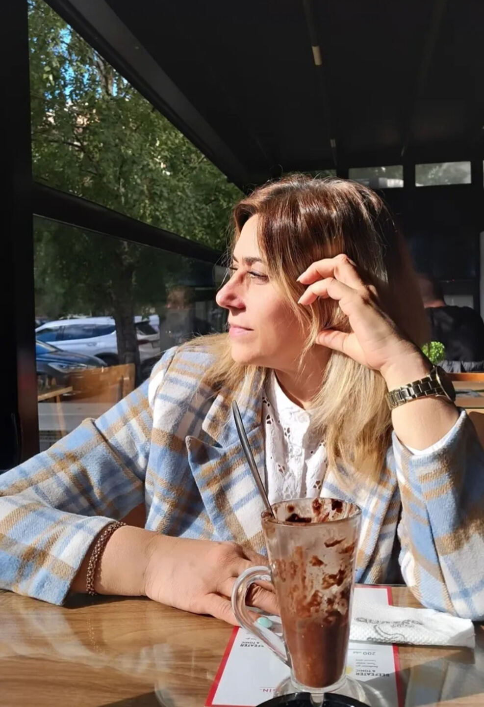 | Hair color | Light brown |